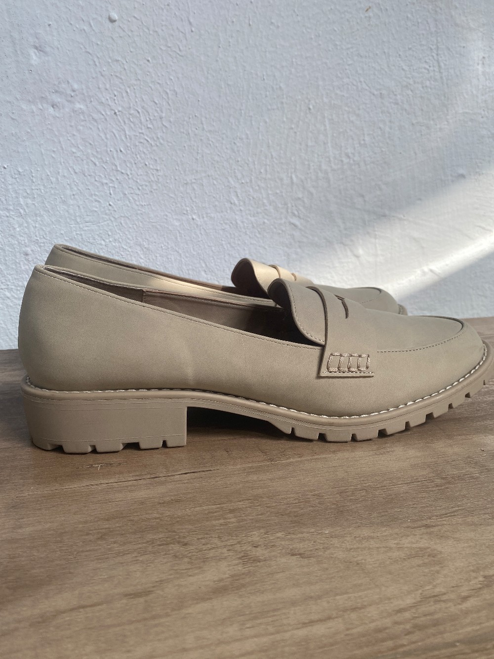 Crisp Classic Penny Loafers. Has a few blemishes from being stored. Size women's 10. Cream/Nude color.